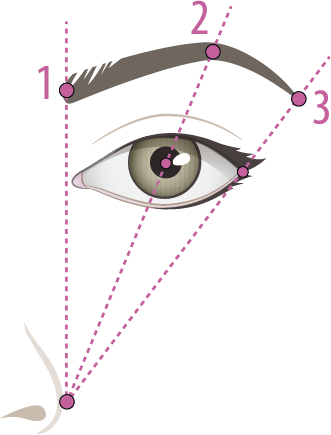 2. Linje från näsan och över pupillen- blir brynets högsta punkt.